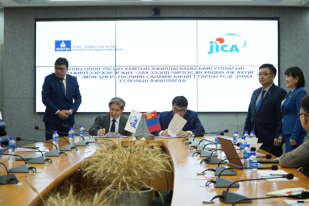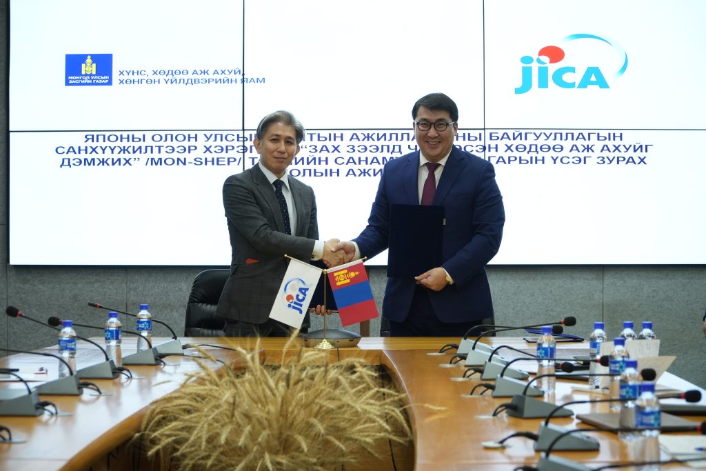 Өнөөдөр Хүнс, Хөдөө аж ахуй, хөнгөн үйлдвэрийн яам, Японы Олон Улсын Хамтын Ажиллагааны Байгууллага (ЖАЙКА) “Зах зээлд чиглэсэн Хөдөө аж ахуйг дэмжих MON-SHEP төсөл”-ийг хэрэгжүүлэх баримт бичигт ХХААХҮЯ-ны Төрийн нарийн бичгийн дарга Т.Жамбалцэрэн, ЖАЙКА-ийн Монгол дахь Төлөөлөгчийн газрын дарга Танаки Шиничи нар гарын үсэг зурлаа.